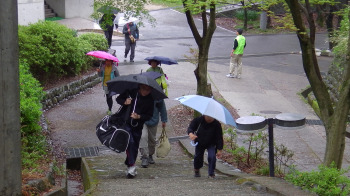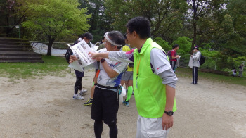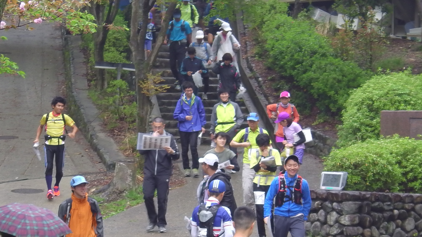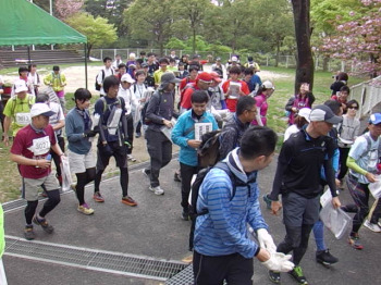 いよいよスタート。 スタート場所に移動です。 雨も上がって、ようい、ドン! |